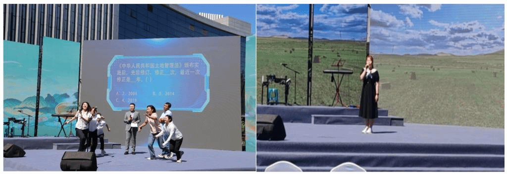 在“大地歌会”表演区,best365官网研究生祁林玉演唱了“敕勒歌”,深情表达对祖国大地的热爱;在互动区,设置与土地相关的知识竞赛题目,姜洪涛老师带领2名同学面对擂主从容答题,取得好成绩。