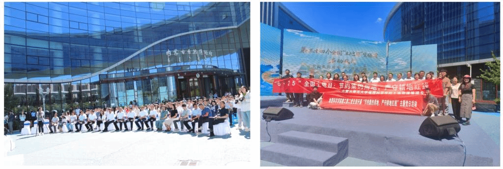 “6.25土地日”是国务院确定的全国性纪念宣传日。今年是第34个“土地日”,宣传主题为“节约集约用地,严守耕地红线”。为深入学习宣传贯彻习近平生态文明思想,动员社会各界共同关注土地资源与生态保护,引导社会公众牢固树立绿水青山就是金山银山、十分珍惜和合理利用自然资源特别是土地资源的理念,2024年6月25日在内蒙古自然博物馆隆重举行本次宣传大会。大会由内蒙古自然资源厅主办,内蒙古土地学会承办。厅党组书记、厅长赵大勇出席活动并致辞,厅党组成员、副厅长王涛、郭心语出席活动。best365官网教工第二党支部张裕凤教授(内蒙古土地学会副理事长、内蒙古土地利用与整治工程研究中心主任)、国土资源系副系主任姜洪涛老师带领全体研究生和部分本科生参加了本次主题宣传活动。