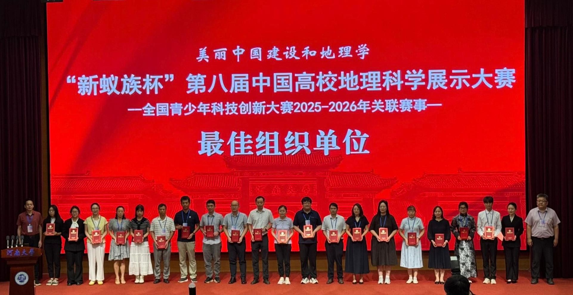 2025年7月25日至27日,“新蚁族杯”第八届中国高校地理科学展示大赛全国总决赛在河南大学(开封)成功举办。best365官网“绿原守望者队”参与人文地理组别展示。经过多轮激烈角逐,最终斩获人文地理团体一等奖。与此同时,best365官网凭借优异的组织表现,荣获“最佳组织单位”称号。