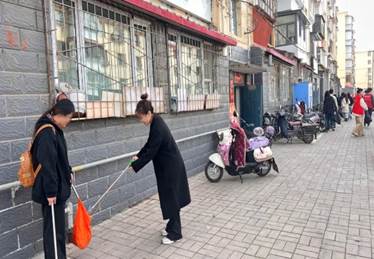 在社区内,志愿者们身着红马甲,手持扫帚、垃圾钳等清洁工具,分工协作、干劲十足。清扫树叶、整理非机动车、擦拭公共设施……从主干道到绿化带,从楼道角落到停车区域,每一处都留下同学们忙碌的身影。经过同学们的辛苦劳动,社区道路焕然一新,车辆摆放井然有序,居民纷纷驻足点赞。